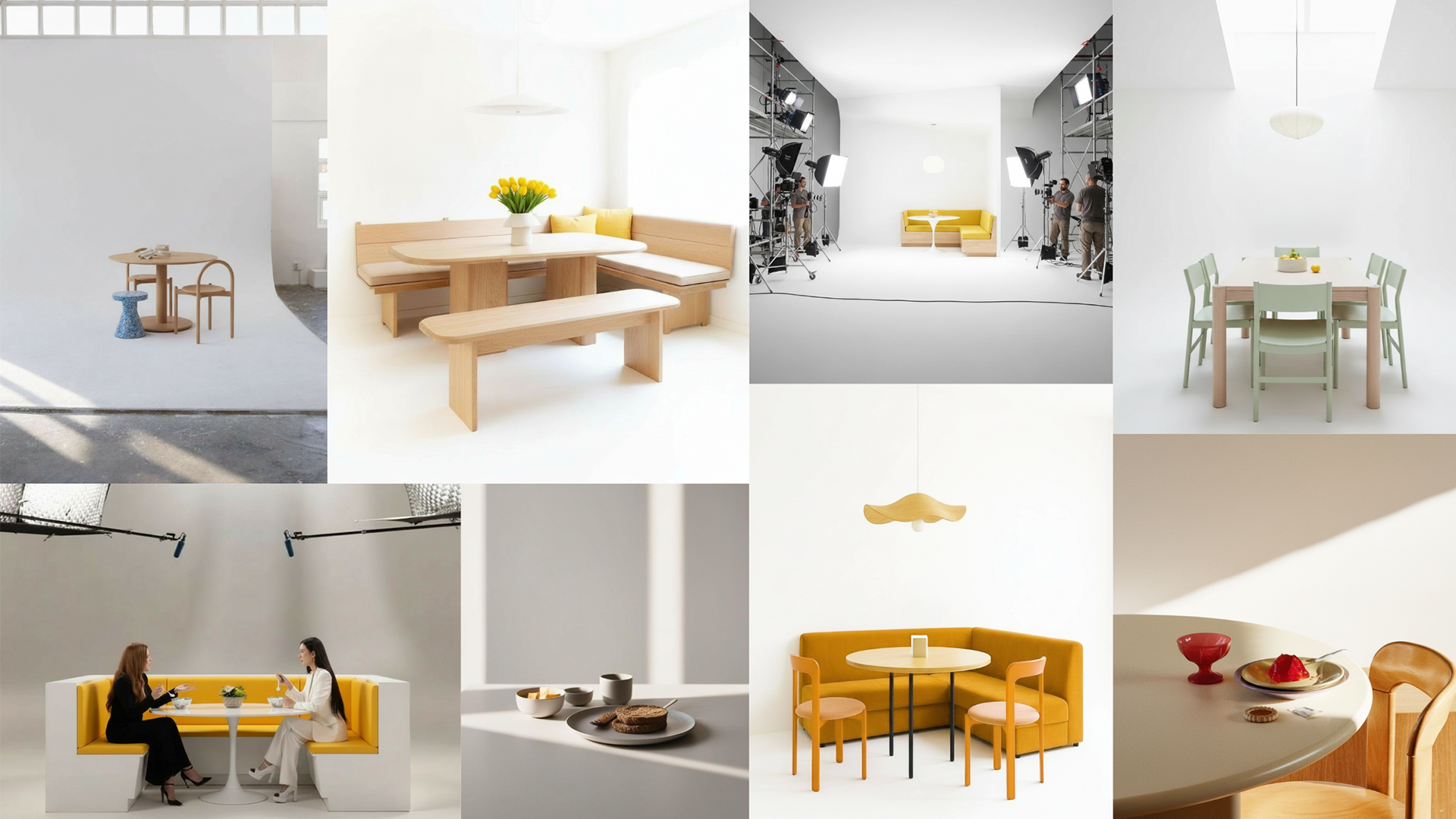 We incorporated warm tones, natural materials like wood, and subtle pops of bold color to make the set feel more inviting, while still keeping the overall look clean and minimal.