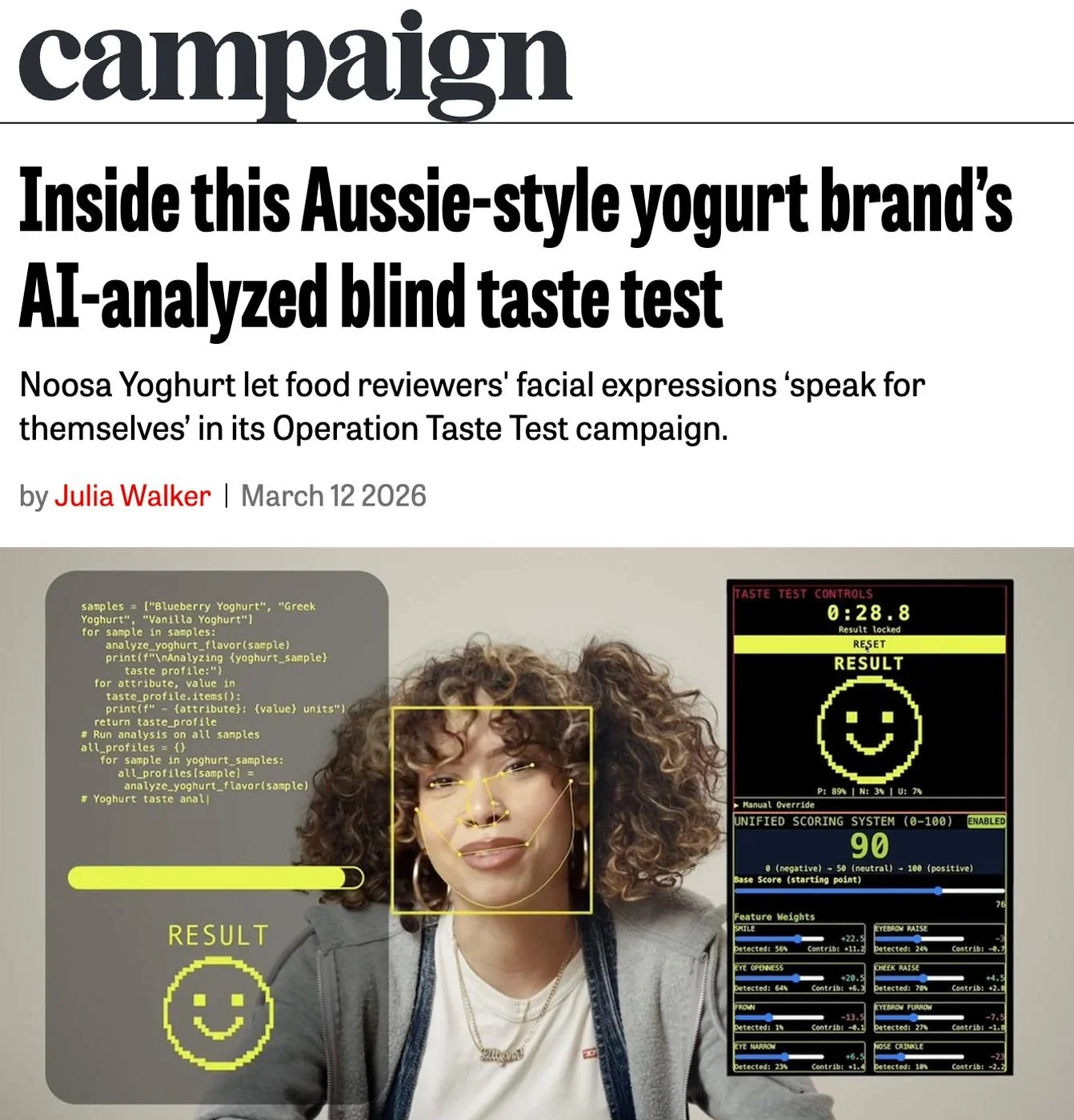 noosa believes yogurt shouldn’t just be… yogurt. It should make people feel something, so we set out to prove it. Challenging the category status quo, we developed technology to analyze how yogurt’s taste and texture impact emotions. With a facial expression expert, we found that 78% of taste testers reacted to noosa as surprising or different. Proving it’s a yogurt that truly makes people feel.